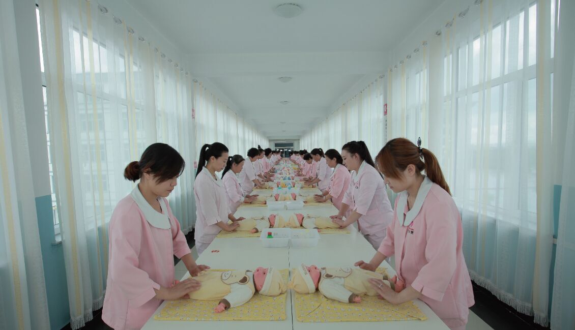 学校以“五个一”为专业建设标准,即一个专业配备一支教学团队,建一个实训基地,成立一个相关企业,引领一种产业发展。乌兰美设有六个专业(工种),分别为家政服务、母婴护理、育婴、养老及病患陪护、催乳、保健按摩;配备了六支技术团队,分别为家政服务技术研究中心、母婴服务技术研究中心、婴幼儿服务技术研究中心、老年及病患服务技术研究中心、催乳技术研究中心、保健按摩技术研究中心;建成了相应的实训基地;成立了相应的直营示范企业,分别为乌兰美保洁服务中心、乌兰美母婴服务港、乌兰美母婴服务中心、乌兰美护工管理中心、乌兰美养老驿站、乌兰美传承中医养生港、乌兰美人力资源服务中心、乌兰美96202信息服务港等企业,正在筹建的还有乌兰察布示范老年养护院。骨干教师们都参与到企业的建设和经营中,学员完成校内培训后在企业中顶岗实习,真正实现了学员在学中做、做中学,老师在做中教、教中做的产教结合培训模式,实现了校企深度融合。乌兰美家庭服务人员的培训在全国同行业中是时间最长的,在校内训练和企业实习的时间加起来长达40天。